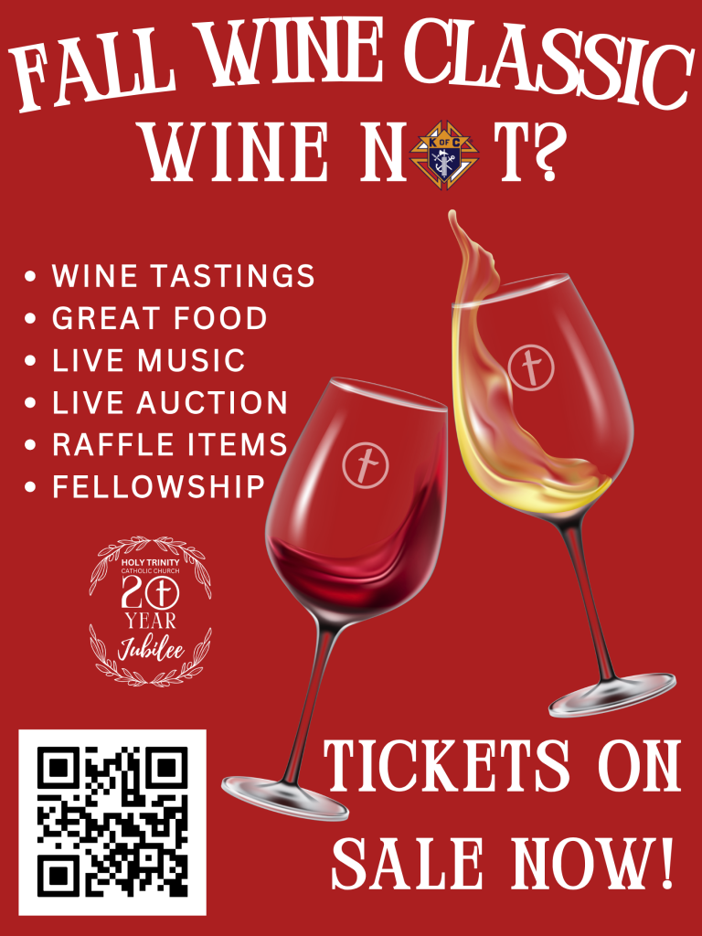 Join us on Saturday, October 25 at 5:00 PM for the 5th Annual Holy Trinity Knights of Columbus Fall Wine Classic!