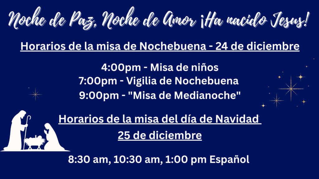 Celebrate the joy of Christmas with our parish family! Christmas is the celebration of the birth of Jesus Christ—God made flesh—who enters our world to bring hope, light, and salvation. For Catholics, this holy day is a powerful reminder of God’s love and His desire to draw close to us.