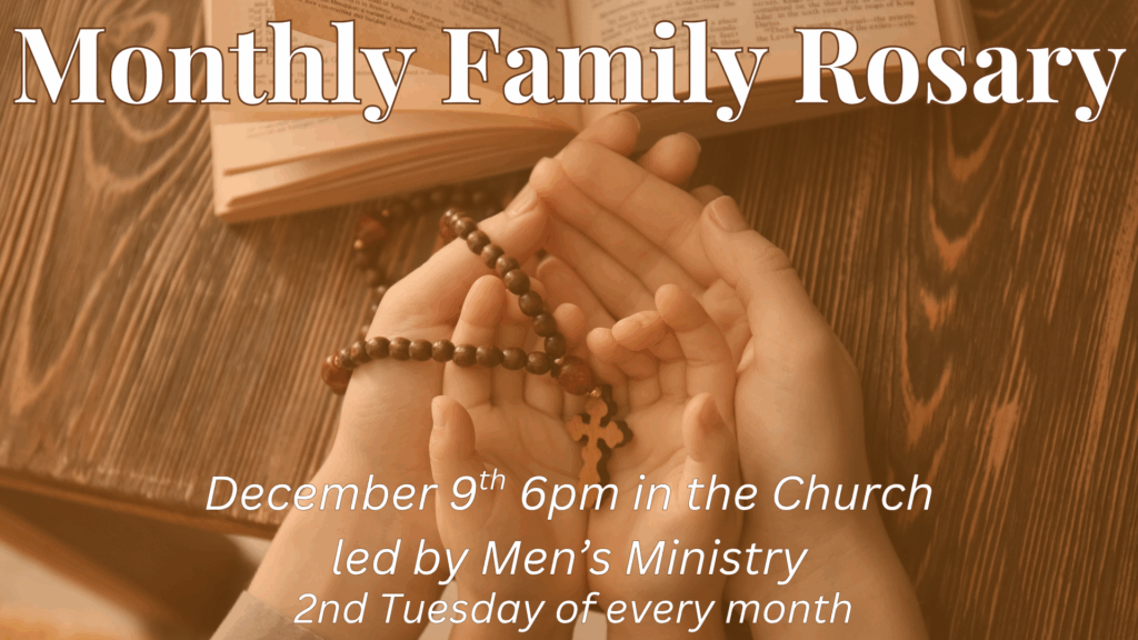 Men’s Ministry will be leading the Monthly Family Rosary on December 9. Join us!