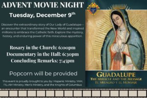 Rosary and Advent Movie Night on December 9th from 6:00pm-8:00pm
